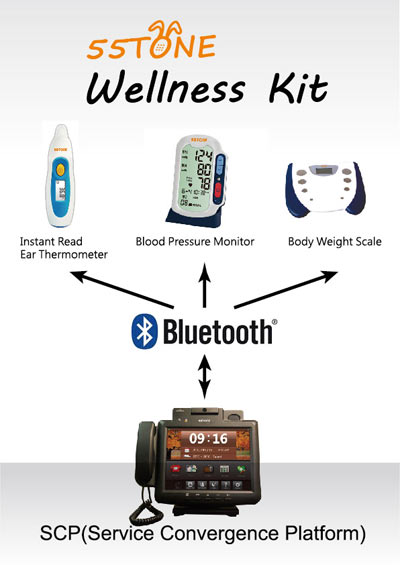 For personal health record / wellness / fitness, 55TONE SCD can connect to medical device to ensure family member’s condition.